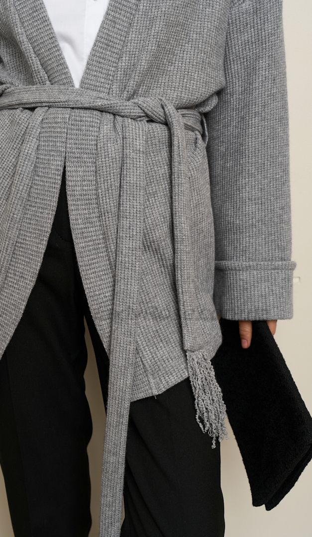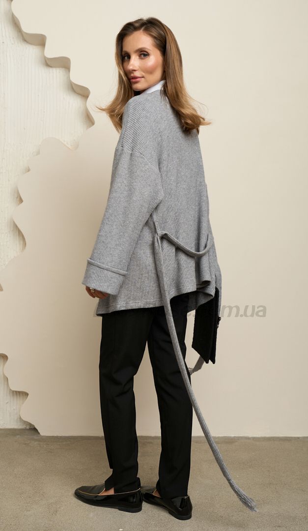 Кардиган трикотажний з поясом сірий